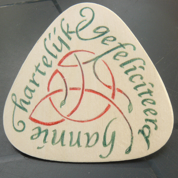 voor de verjaardag van een muzikale vriendin, met haar favoriet: in een blauw geruite kiel, "jolig" te spelen