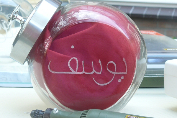 A glass birthday card for my brother (a Douglas Adams fan)
