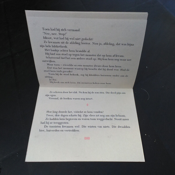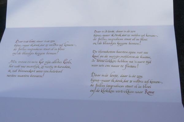 Inspired by my joy on Sunday afternoon (designing a humanist letter ‘g’, playing with its negative space, and talking with people who know what those words mean), early Monday morning gave birth to this piece; it lives with Sarah Charalambides now, who led the workshop ‘Experimental Typography’ at Buitenkunst Randmeer.