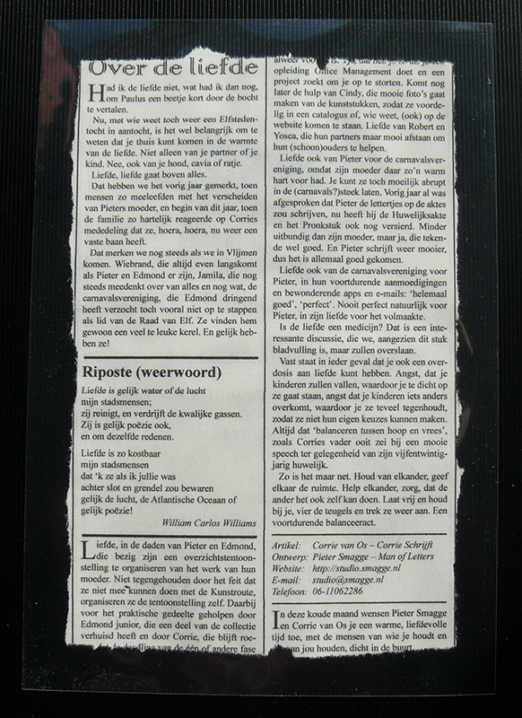 gedrukt op krantenpapier en gelamineerd